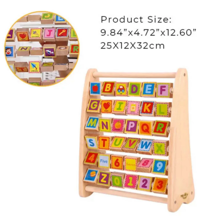 Enhance your child’s patience, essential skills, and cognitive thinking through a fun and educational playtime experience with the help of the Tooky Toy Alphabet Abacus Natural.